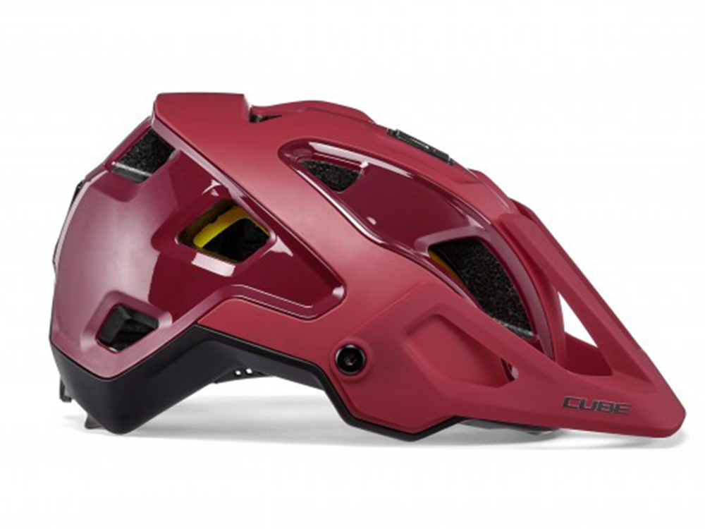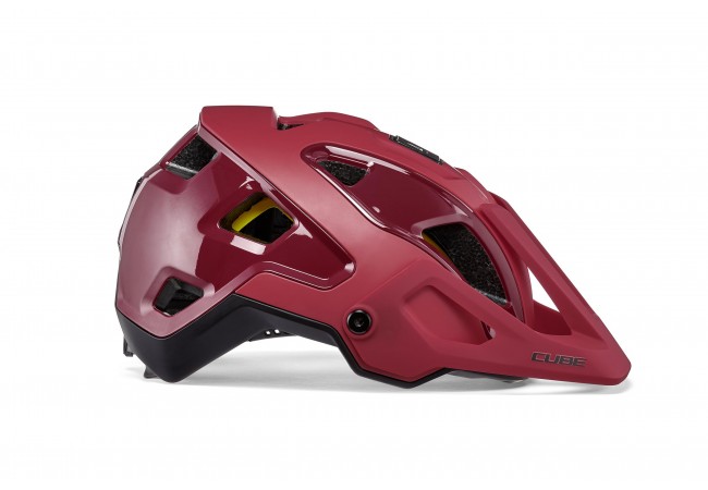 Casque Enduro CUBE STROVER : protection MIPS avancée, ajustement naturel CUBE Fit, couverture arrière renforcée, fermeture magnétique Fidlock, compatible caméra d’action ou lampe, tailles S (49-55), M (52-57), L (57-62), coloris Red.