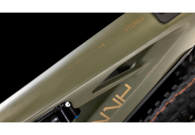 Stereo Hybrid ONE77 HPC TM 800 : VTT électrique haut de gamme, tout suspendu avec débattement de 170 mm, roues mulet 29’’ avant et 27,5’’ arrière, batterie 800Wh intégrée, moteur Bosch CX GEN 5 100 Nm, transmission Sram GX Eagle AXS 12 vitesses, freins Magura MT7 hydrauliques, suspension FOX haut de gamme, cadre carbone HPC.