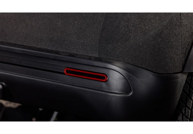 La caisse arrière du trike est un atout majeur : imperméable, verrouillable et conçue pour résister à un usage intensif. Elle peut accueillir jusqu’à 50 kg tout en maintenant le véhicule extrêmement stable grâce à la géométrie optimisée du châssis.